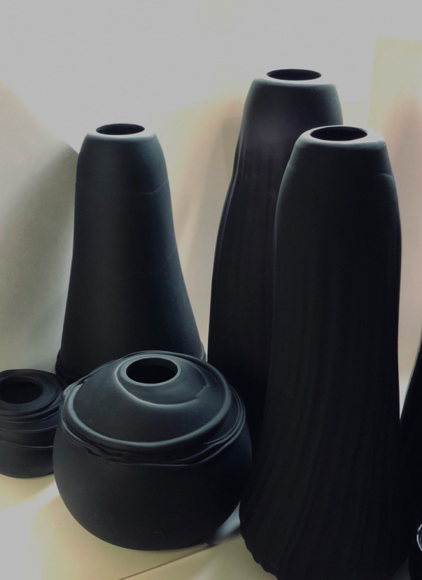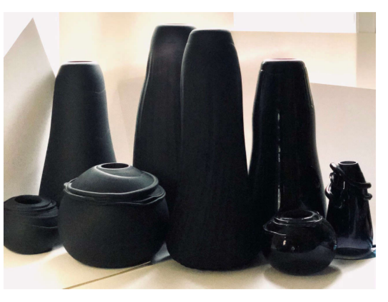 размер, скульптурная форма и текстура черного матового стекла делает их